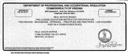 Paul Hartke, Licensed Virginia Instructor/ Broker